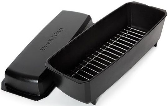 Made of heavy cast iron surrounded by a durable porcelain coating, easy to season and easy to clean. On the smoker try 1 hour in the smoke at 225°F / 107°C and 2 hours in the roaster at 300°F / 149°C. Or on a gas grill, roast your ribs completely and in under 1 hour at 415°F / 212°C. Crafted to fit front to back directly on the cooking grids or Flav-R-Wave™ of a Broil King® grill. Save space, cook better ribs, it's a great grill top Dutch oven too!
