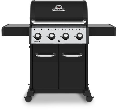 The Broil King® Crown™ 400 Series features 460 sq. in. primary cooking surface and includes a durable cast aluminum oven, 4 stainless steel Dual-Tube™ burners, stainless steel Flav-R-Wave™ cooking system, and electronic ignition. All Crown 400 series include heavy-duty 3-position cast iron cooking grids, black drop-down side shelves and enclosed black cabinet base.Read More
