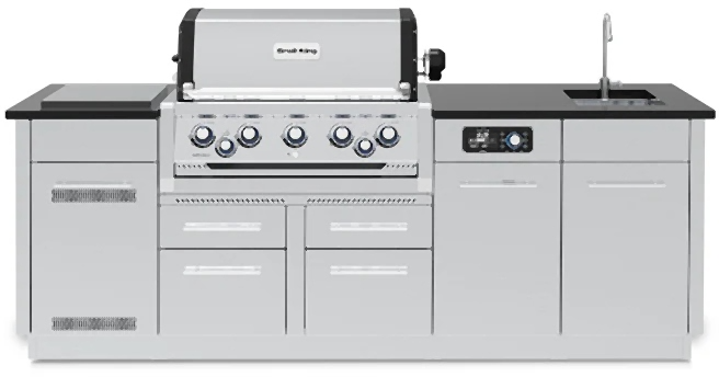 The Broil King® Imperial™ QS 590i series features 625 sq. in. of primary cooking surface and includes 5 stainless steel Dual-Tube™ burners, iQue burner control in the main cookbox, built-in oven lights, illuminated control knobs, 5 professional cast stainless steel cooking grids, stainless steel warming rack, stainless steel Flav-R-Wave™ cooking system, and electronic ignition. The QS 590i features 304 stainless steel utility cabinet drawers with a tank holder (LP). Granite counter top, stainless sink and faucet not included.Read More