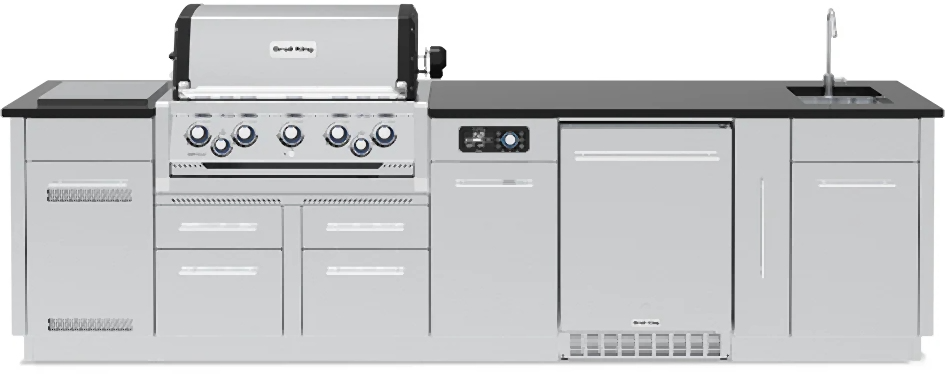 The Broil King® Imperial™ QS 590i series features 625 sq. in. of primary cooking surface and includes 5 stainless steel Dual-Tube™ burners, iQue burner control in the main cookbox, built-in oven lights, illuminated control knobs, 5 professional cast stainless steel cooking grids, stainless steel warming rack, stainless steel Flav-R-Wave™ cooking system, and electronic ignition. The QS 590i features 304 stainless steel utility cabinet drawers with a tank holder (LP). Granite counter top, stainless sink and faucet not included.Read More
