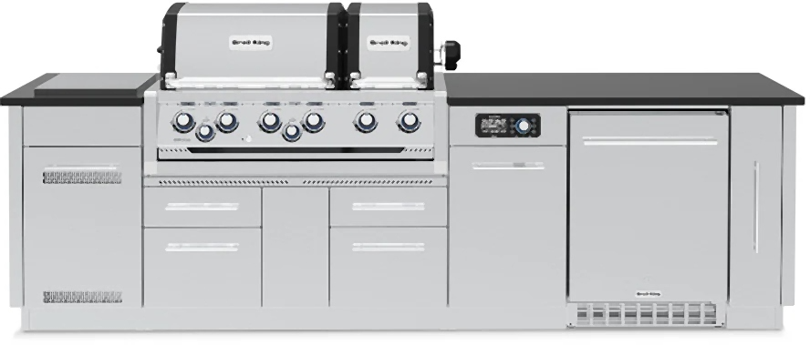 The Broil King® Imperial™ QS 690i series features two totally independent ovens with a total of 750 sq. in. of primary cooking surface and includes 6 stainless steel Dual-Tube™ burners, iQue burner control in the main cookbox, built-in oven lights, illuminated control knobs, 6 professional cast stainless steel cooking grids, stainless steel warming rack, stainless steel Flav-R-Wave™ cooking system, and electronic ignition. The QS 690i features 304 stainless steel utility cabinet drawers with tank holder (LP). Granite Counter Top not included.Read More