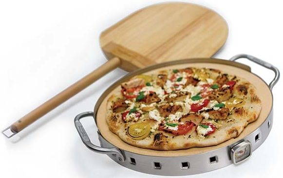 The Broil King® Imperial™ pizza stone features a high grade 1.2 mm stainless steel cradle with oversized 10 mm stainless steel handles. The set includes a resilient 13-in pizza stone, able to withstand rapid temperature changes, a high grade stainless cradle and wooden pizza peel. The cradle is designed to keep the pizza from sliding off of the stone while removing it with the peel.Read More