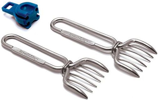 Built to last and perform, these meat shredding claws are designed to hold and pull pork roasts, pot roasts and poultry. They also include a silicone holder / hanging coupler to keep them together for convenient storage. The silicone holder / hanging coupler is heat resistant to 500°F and dishwasher safe!