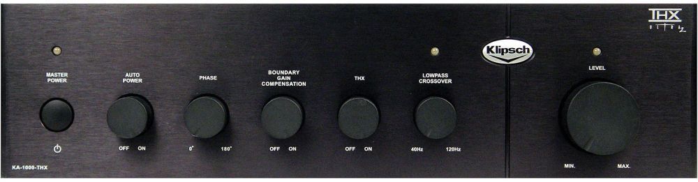 Finished in black with a machined aluminum front panel and knobs, the KA-1000-THX uses professional style NL2 Speakon® outputs for the high current transfer of power to the subwoofer.