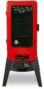 The rear wheels and handle increase mobility, and a stylish red semi-gloss finish is sure to impress. Experience how Pit Boss is redefining the smoker industry in your own backyard today!