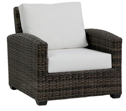 Featuring a Mediterranean design, the Coral Gables club chair displays rounded armrests, weaved resin on an aluminum frame and plush seat and back cushions. Fabric choices available.Read More