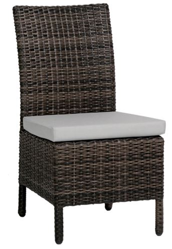Featuring a Mediterranean design, the Coral Gables dining side chair displays weaved resin on an aluminum frame and plush seat cushion. Fabric choices available.Read More