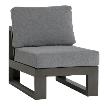 "Finishes: Ash Grey ASG Frame: Aluminum Deep seating with wide armrest in 4.5 inches Aluminum with powder coating, hand brushed surface and protective top coating A generous modular seating group with 26”x27” seat size Modular design of sectional provides flexibility and style Interlocking system to secure sectional pieces Max. weight load: 350 LBS per seat Contract quality".