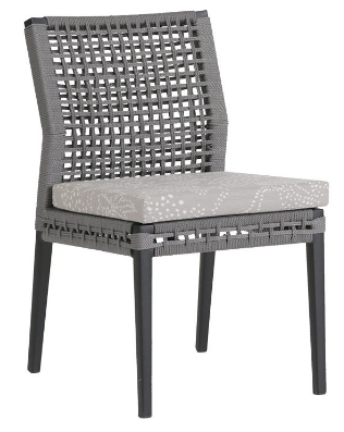 The Genval side chair features a black powder coated aluminum frame with woven back and base for a casual but stylish look. Customize it with your choice of fabric and enjoy hours of relaxing time by the lake or pool.Read More