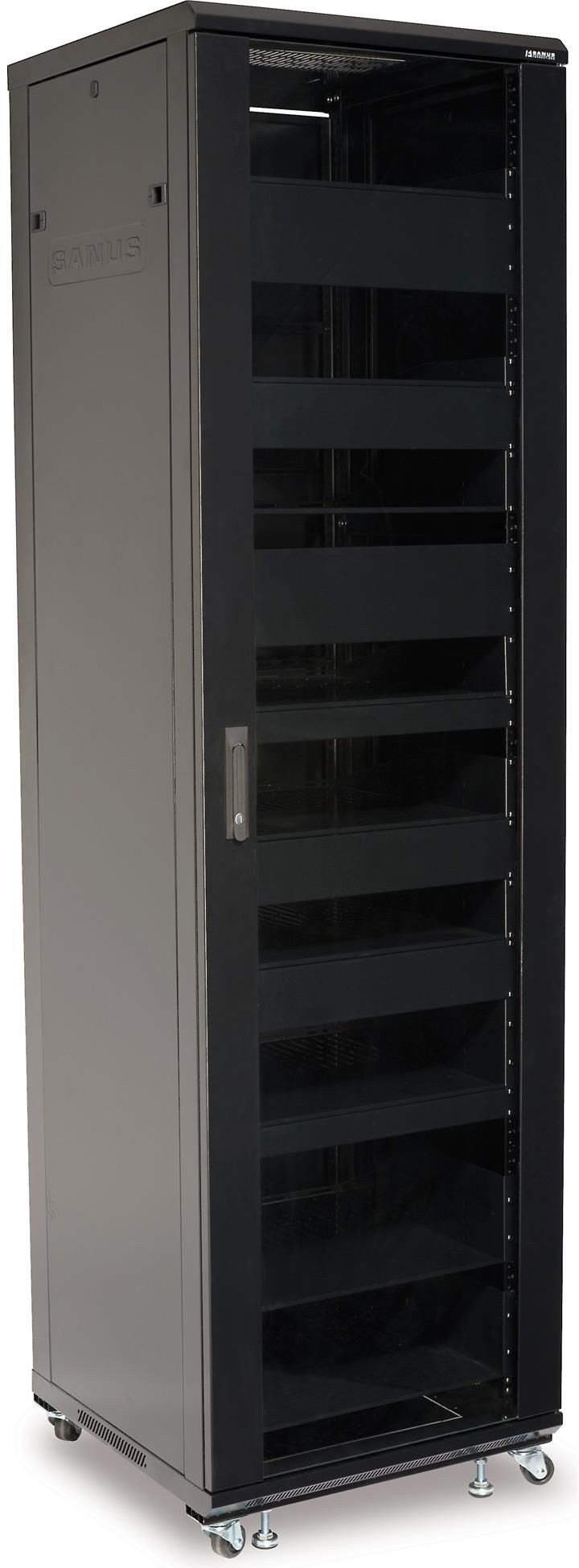 SANUS Component Series CFR2144 AV rack can support up to 1000 lbs of AV gear. It comes pre-assembled with blanking panels and vented shelves, which include back stops to ensure AV equipment does not move during use.Read More