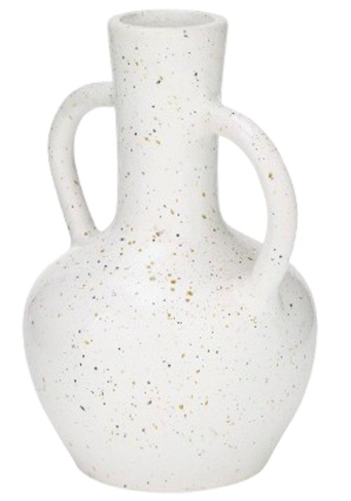 This eye-catching vase, with its delicate black speckles and graceful handles, is the perfect statement piece to elevate your tablescape. Crafted from glazed terra cotta, it serves as a magnificent vessel for your favorite dried or faux florals.Read More