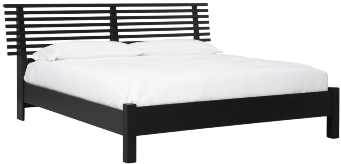 Sophisticated style for the savvy shopper. This panel bed prioritizes affordable, on-trend design. Its subtle replicated texture recalls the natural beauty of wood, highlighting the slatted styling. And a matte black finish savvily suits different approaches to modern aesthetics. Mix and match with light and bright hues, or pair with other dark tones for a moody look.Read More