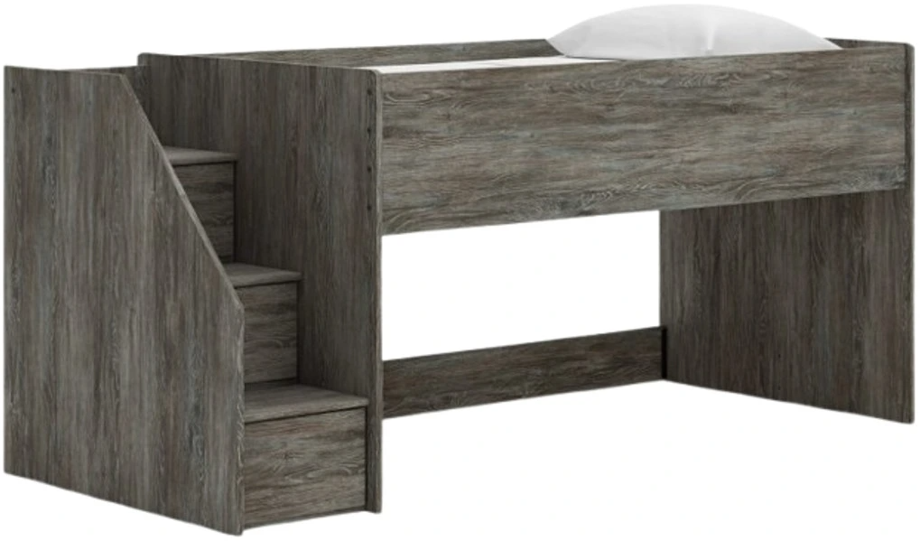 Cool, casual style is for all ages. With this twin loft bed, they get the function they need plus the refined design you love. Approachably neutral in a rustic warm gray, it’s adaptable enough to pair with an assortment of existing colors and room decor. Faux metal detailing with nailhead accents lends an industrial edge.Read More