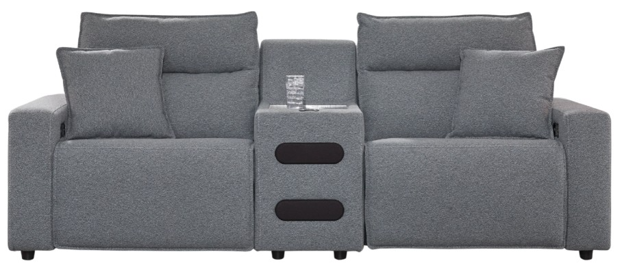 | Sectional Features | Console w/Storage, Stain Resistant, Throw Pillows Included, USB Ports, Wall Hugger, Built-in Sound System, Cup Holder, Wireless Charging |