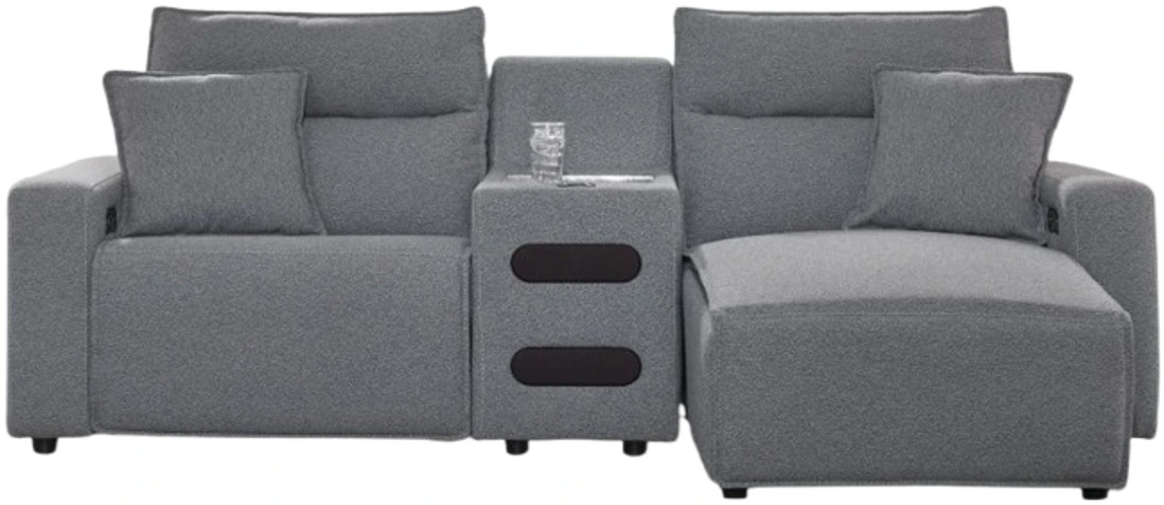 | Sectional Features | Built-in Sound System, Cup Holder, Console w/Storage, Throw Pillows Included, Wireless Charging, USB Ports |