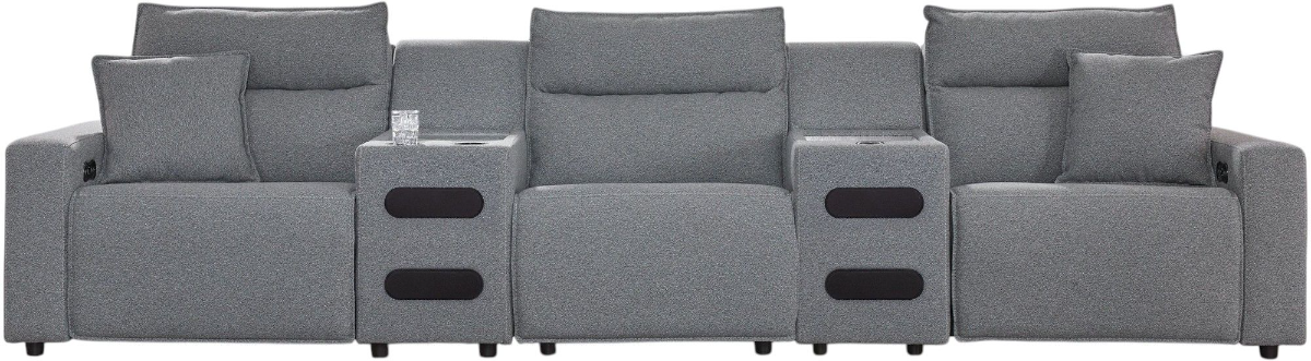 Includes 5 modular pieces: left-arm facing power recliner, armless chair, 2 consoles with audio systems and right-arm facing power recliner