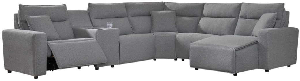 Includes 6 Modular Pieces: Left-arm facing power recliner, power armless recliner, armless chair, console with storage, wedge and right-arm facing power reclining back chaise
